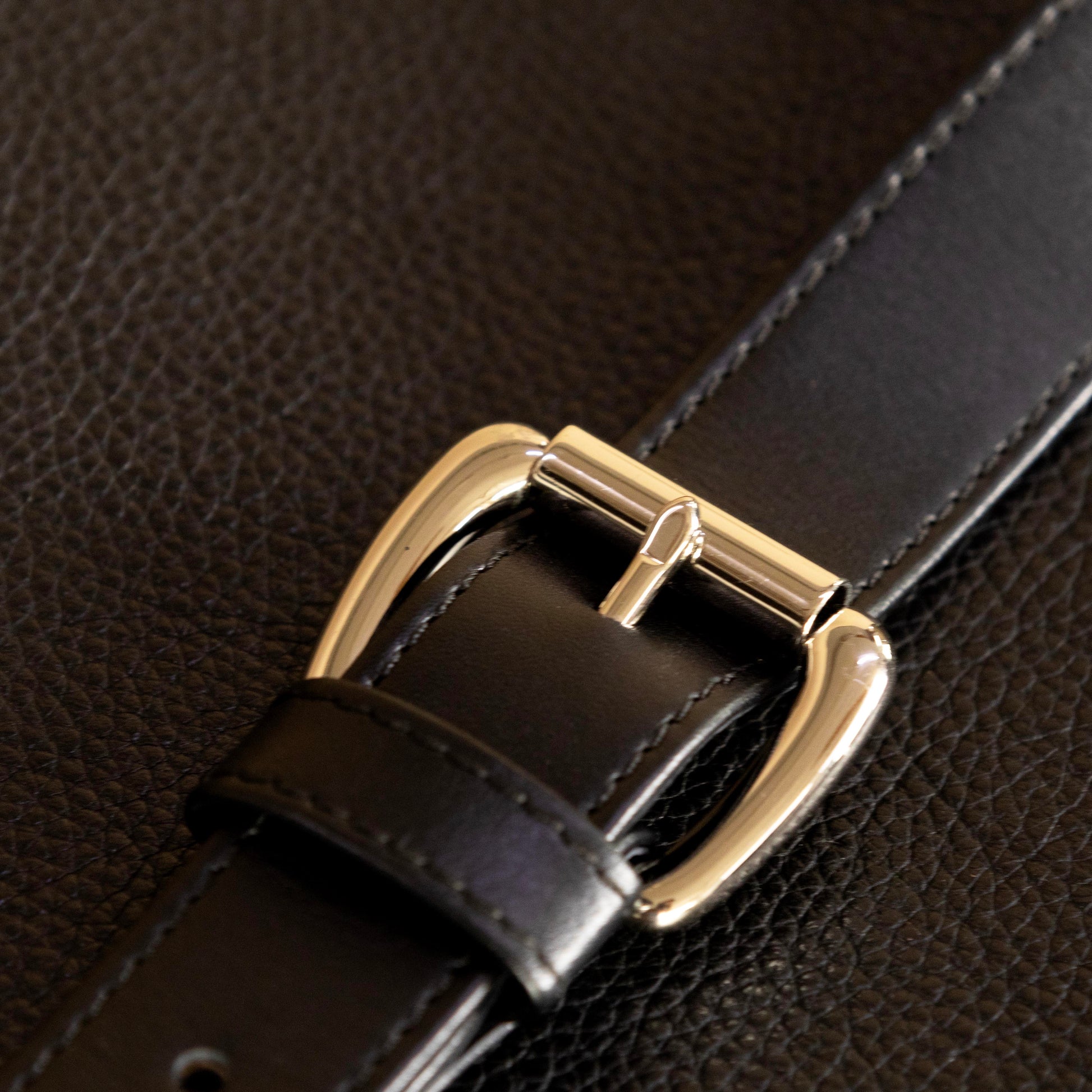 Black Full Grain Leather. Soft, Pebble Grain in Texture. Chrome Tanned from the best tanneries of Southern India. The Strap is crafted from Full Grain Leather that has a Smooth Natural Finish.