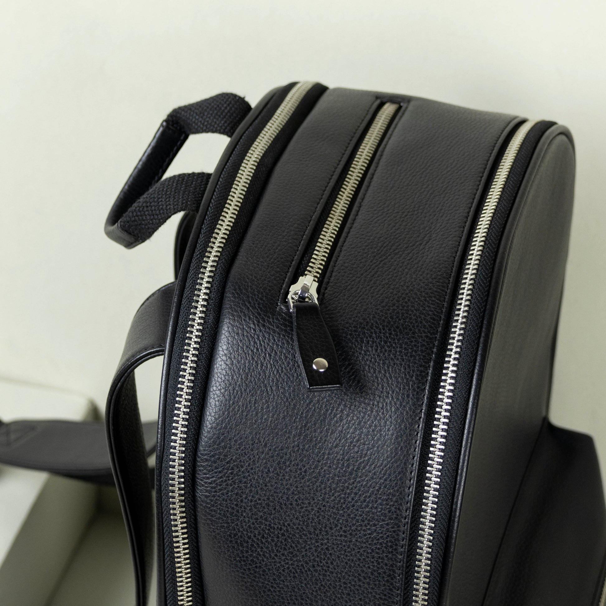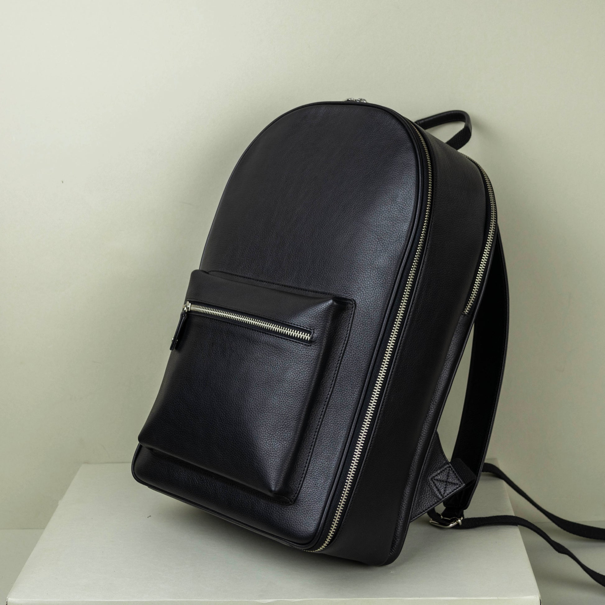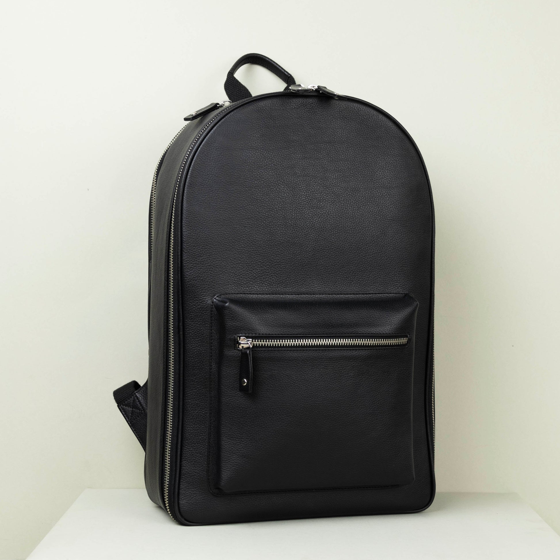 A large leather backpack to for weekend travel. Handcrafted from cowhide leather, this backpack features detailed interior organization. Features a zip around closure that runs on three sides for complete access.