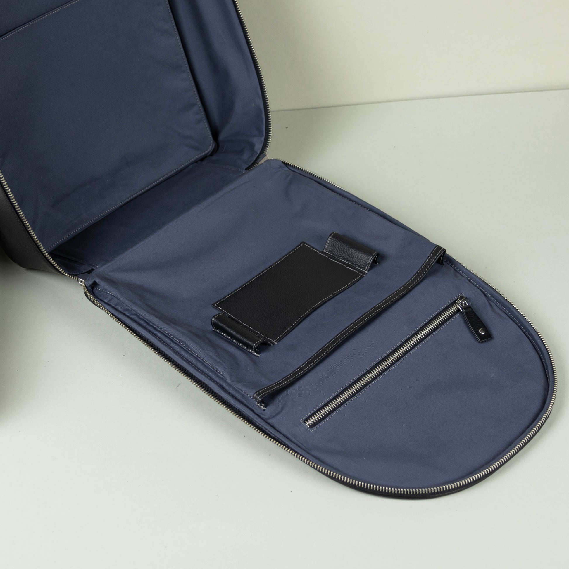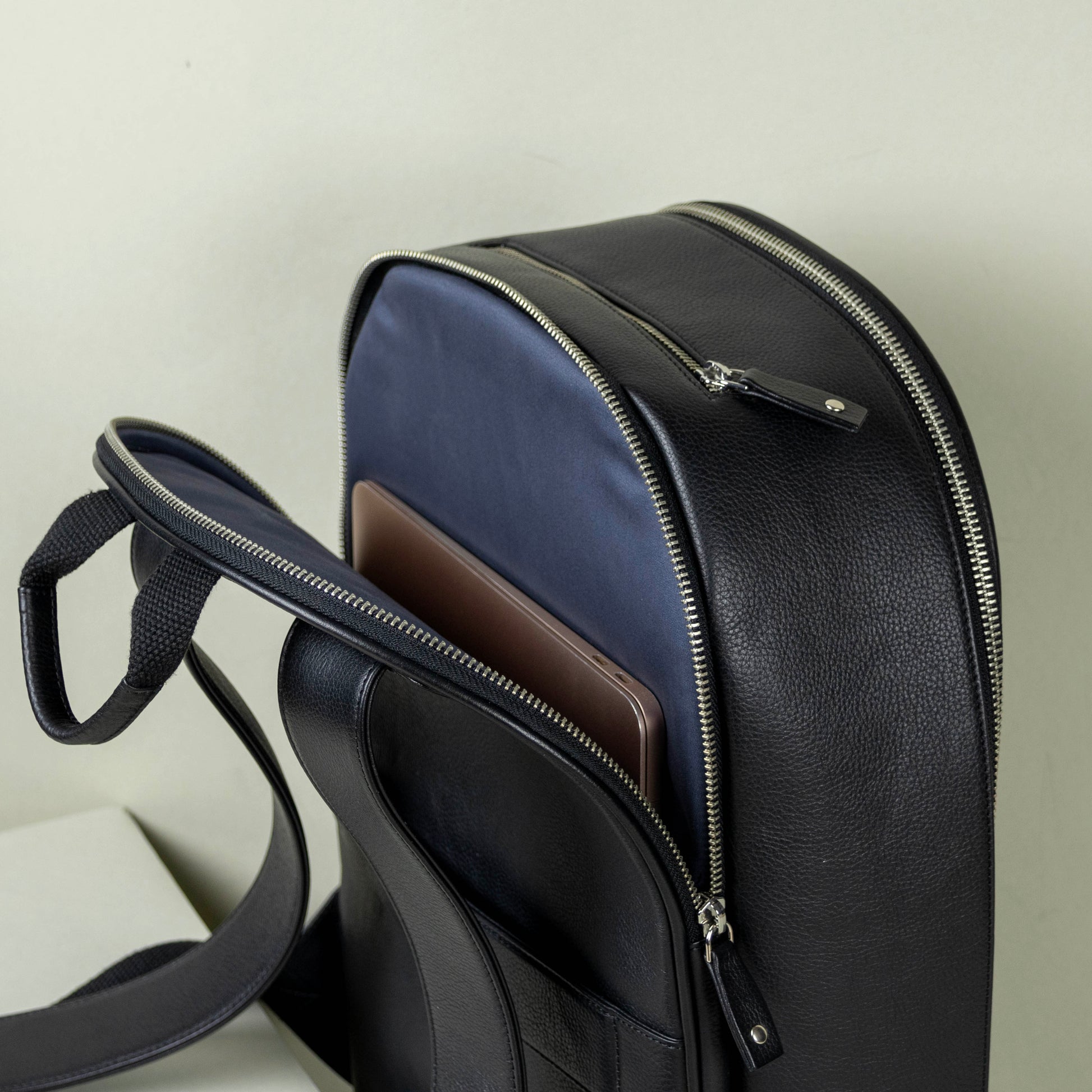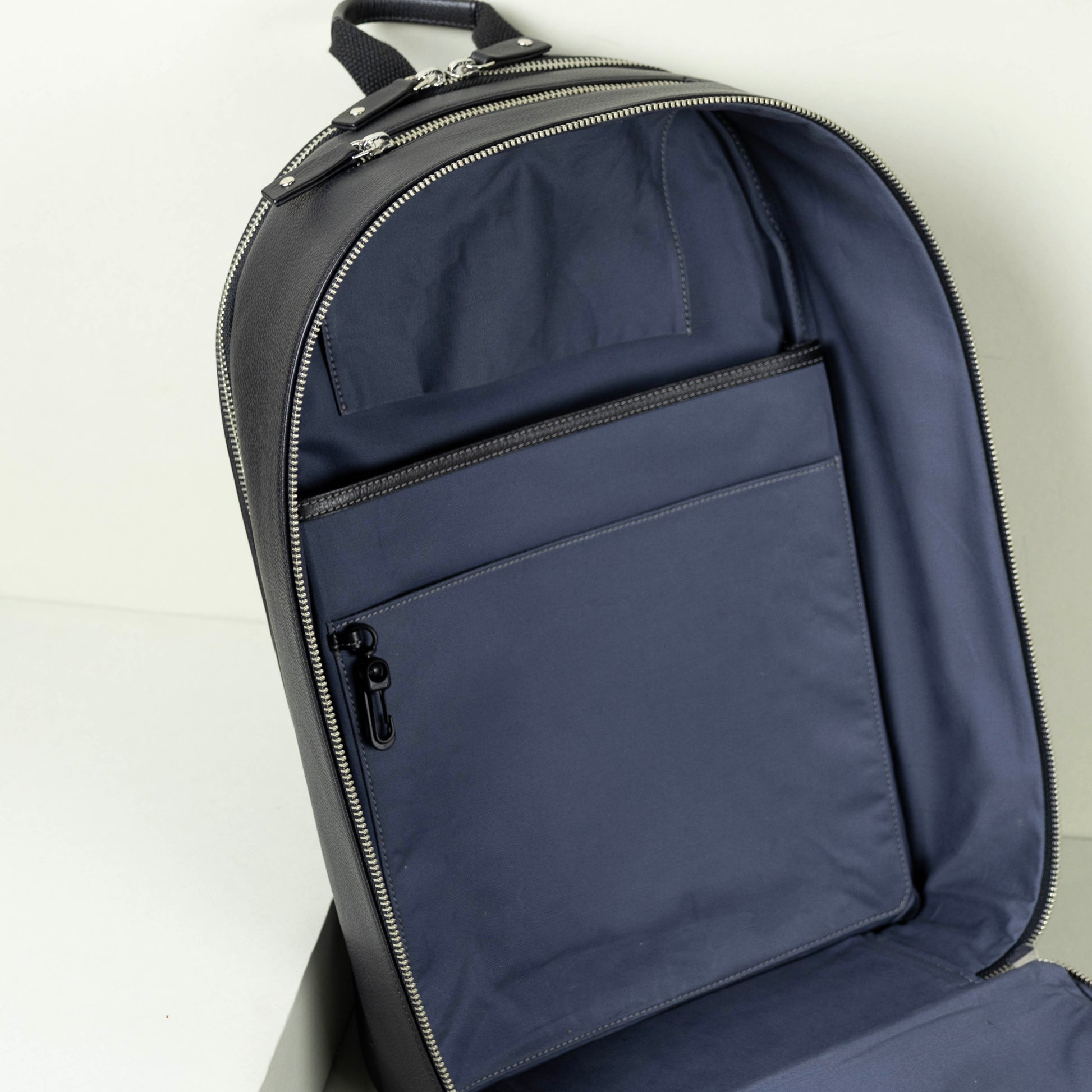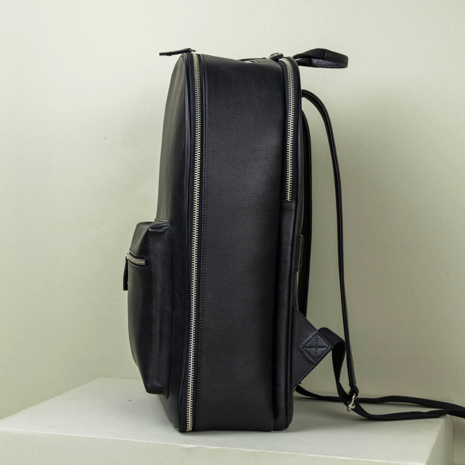 A large leather backpack to for weekend travel. Handcrafted from cowhide leather, this backpack features detailed interior organization. Features a zip around closure that runs on three sides for complete access.