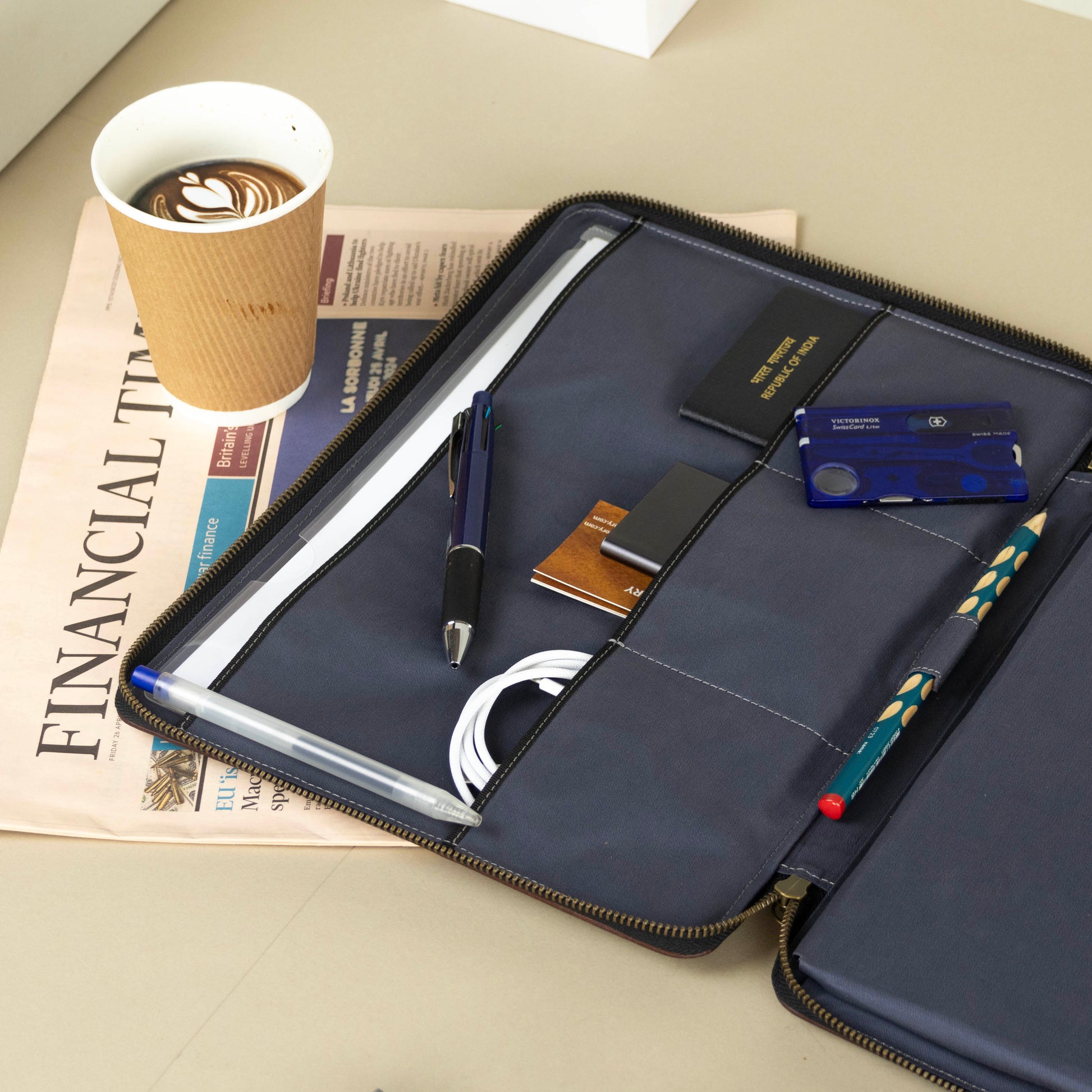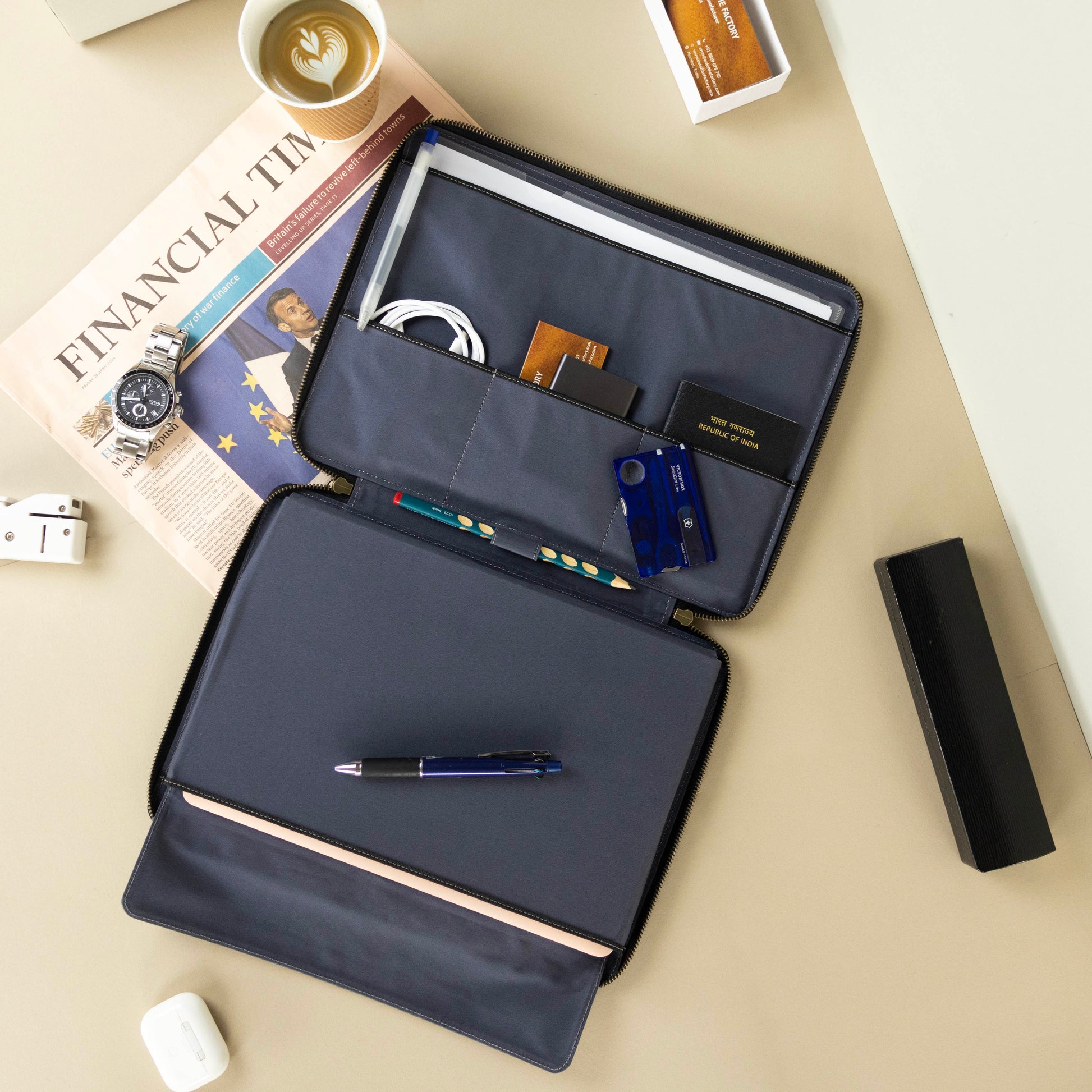 - Notebook Holder: 3 small flat compartments for slim notebooks